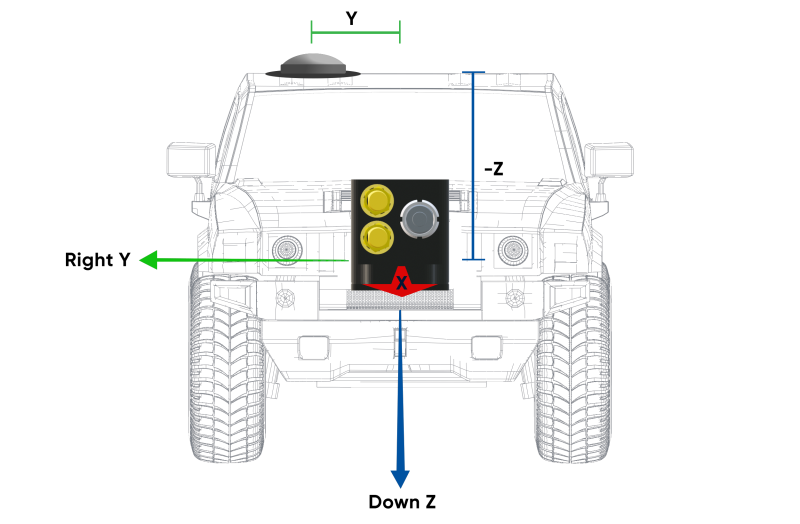 Note: The Z-axis is positive downwards. Mounting the antenna above the INS unit requires a negative Z offset.
