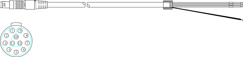Optional 12-pin unterminated 3 m cables are available for custom connections. Each individual wire in the unterminated cable is a colour-coded FEP coated wire. See Pin Allocation Table for details on pin out functions. Custom cable lengths for unterminated types are available subject to minimum order quantities and lead times; contact the Sales team for more information.