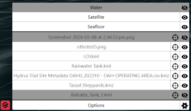 • Eye icon button - Shows and hides the layer in the map pane