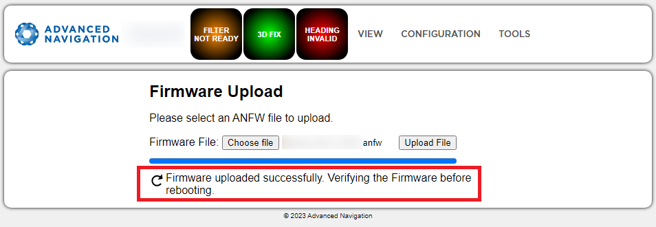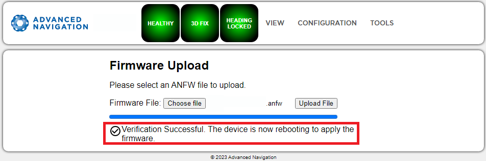 Once uploaded, the system will automatically verify the firmware prior to reboot.
