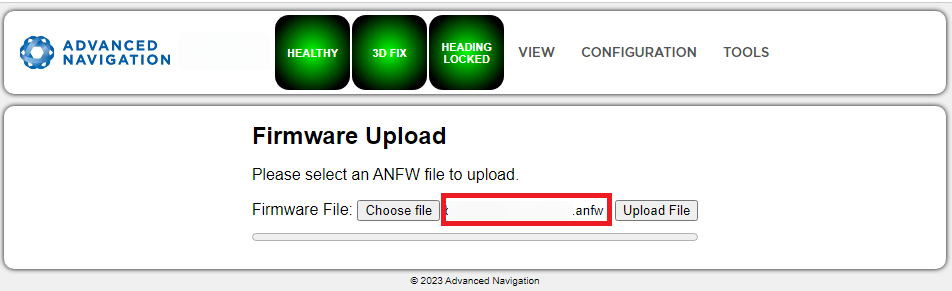 Click "Choose File" and select the appropriate ANFW file for upload.